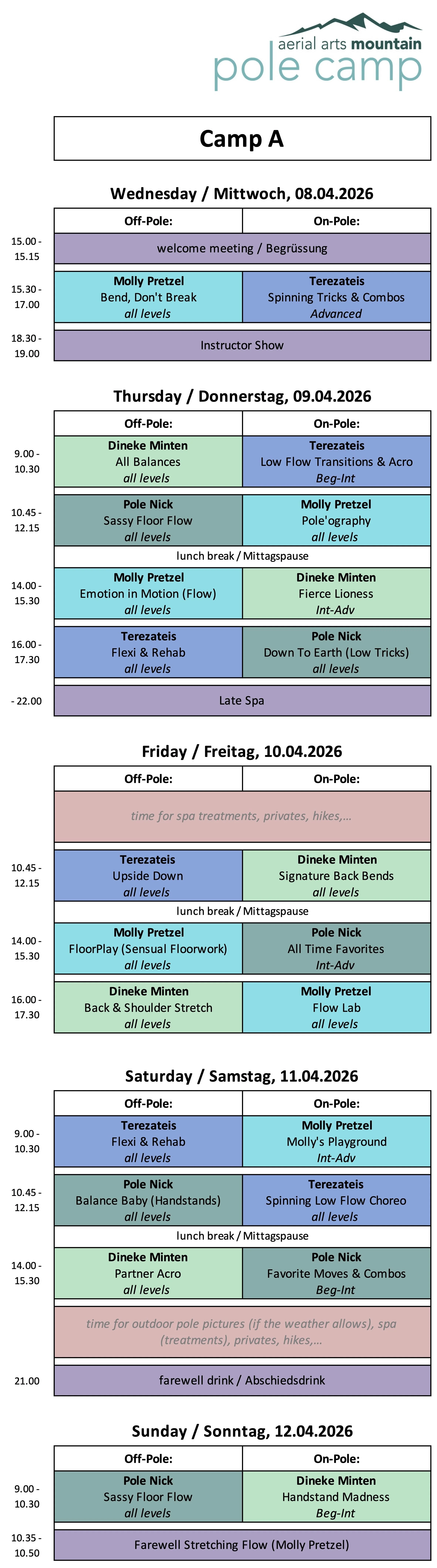 Die Mindestanforderungen für die Teilnahme am Camp sind: solider Invert sowie Outside- & Inside Leg Hang (Shouldermount von Vorteil).